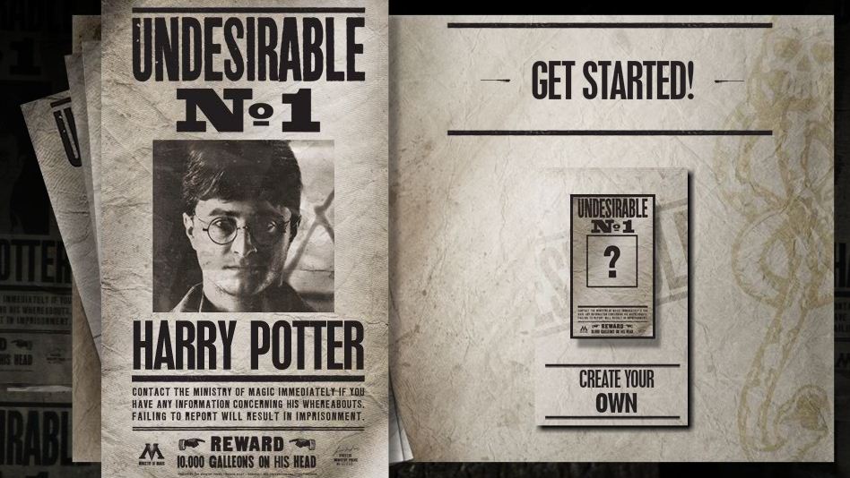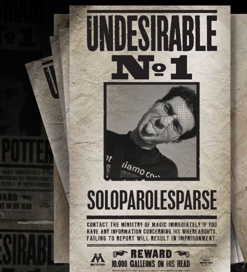 Stile molto vintage (vagamente vecchio West) per la pagina che si apre con la foto del maghetto piazzata su un manifesto Undesirable, con tanto di taglia e l’invito a provare a sostituire la propria foto (o quella di un amico) a quella del maghetto.