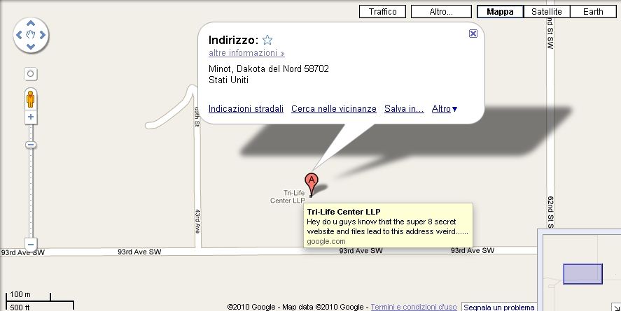 La busta, che vedete nelle foto arriva da una casella postale di Mint, nel North Dakota ed una veloce ricerca su Google maps indica che in quel punto sorge il Tri Life Center LLP, che qualcuno ha già segnalato come legato a Super 8… facile che anche da qui verrà presto fuori qualcosa.
