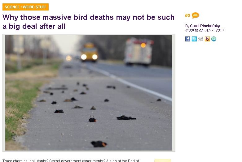 Pare infatti che la dott.ssa abbia fatto studi legati alle sostanze disperse nell’atmosfera e che a questo si possano legare le misteriosi morti di uccelli di qualche mese fa in diverse zone del pianeta (come legare un virale alla cronaca).