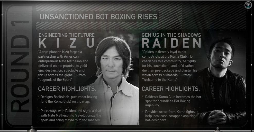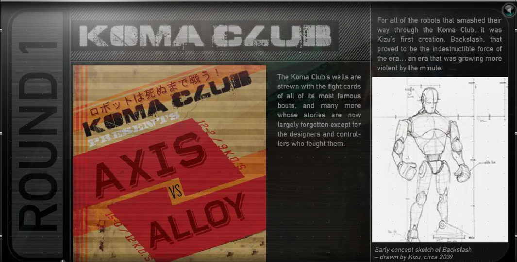 Nel Round 1 si trovano notizie relative alla nascita del progetto di boxe robotica che inizialmente si chiamava Koma Club