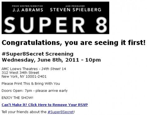 Le indiscrezioni che volevano la soluzione del Super8Secret per ieri sera alle 21.00 si sono rivelate corrette ed il vostro blogger che in questi giorni sta tampinando ogni spicchio del virale di Super 8 era lì pronto ad andare sul sito che riportava la domanda What is the #Super8Secret?