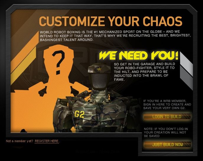 Qui dentro ci si trova di fronte ad un titolo chiaro: Design of Chaos e all’invito a loggarsi (ma anche no) per realizzare il proprio robot.