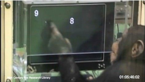 Il primo (10/27), raccolto da tale R. Wyatt (vi dice niente questo nome?), risalirebbe al 25 settembre 2009 ed è un test di intelligenza della Kyoto University che mostra come lo scimpanze in questione sia in grado meglio di un uomo di ricordare sequenze numeriche e posizionamento su uno schermo.