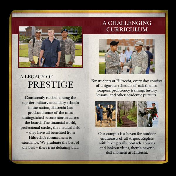 Misguided mostra un depliant sfogliabile della Hiltrecht Academy, scuola che sembra formare i dirigenti di domani.