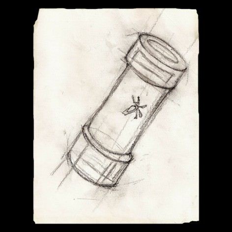 Anche qui una scritta: “Rudimentale evidenza di HSP (Highly Sensitive Person n.dr.): l’abilità di guardare una comune mosca e vedere oltre. Sintesi di biologia e tecnologia – tutto incapsulato in questo semplice tubo?”