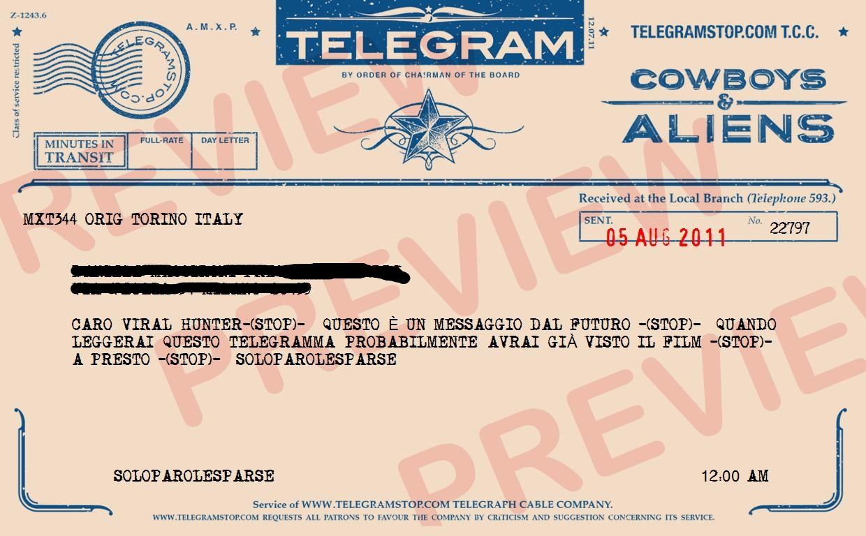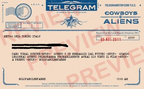 Ah… l’altra cosa carina è che si possono spedire telgrammi dal passato o dal futuro… in perfetto stile Cowboys & Aliens!