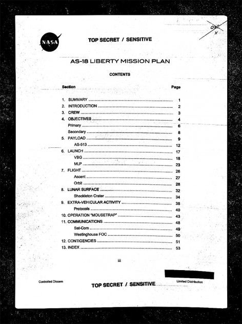 Qui sopra infine abbiamo l’indice del piano della missione Apollo 18.