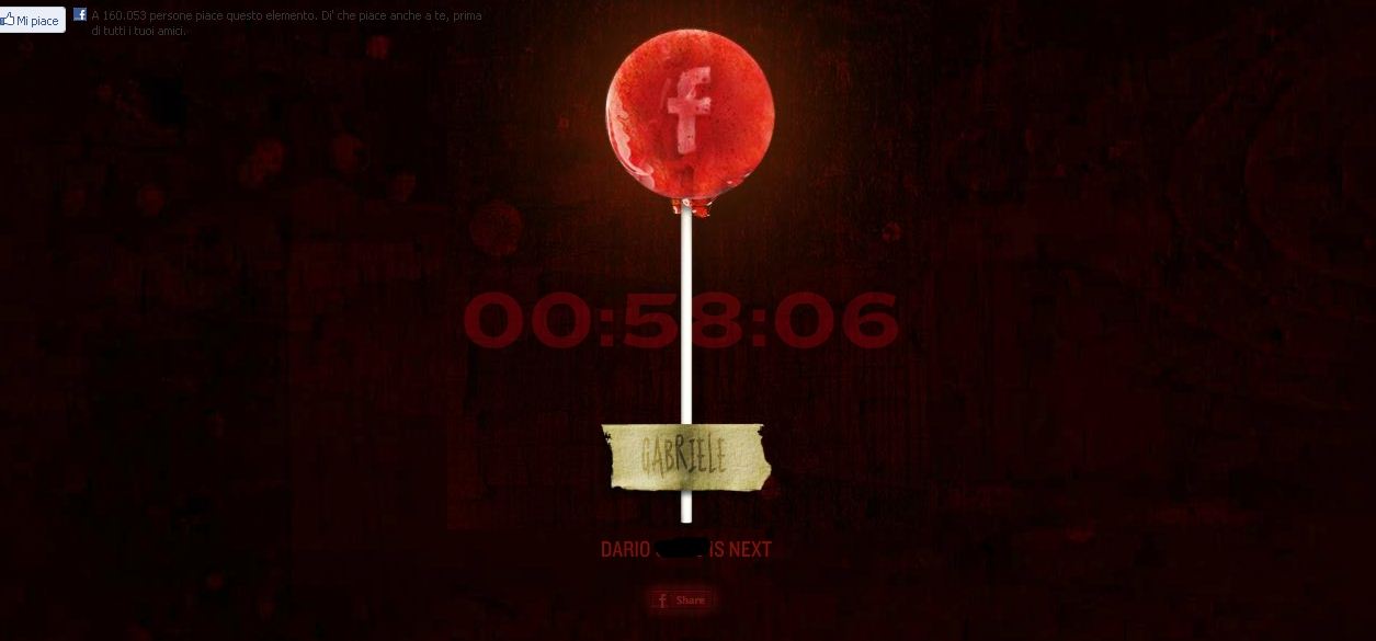 A questo punto il filmato si interrompe e parte un countdown di un’ora con il lecca lecca diventato preoccupantemente rosso sangue, il nostro nome in bell’evidenza e perfino il nome della prossima vittima: uno dei nostri contatti!