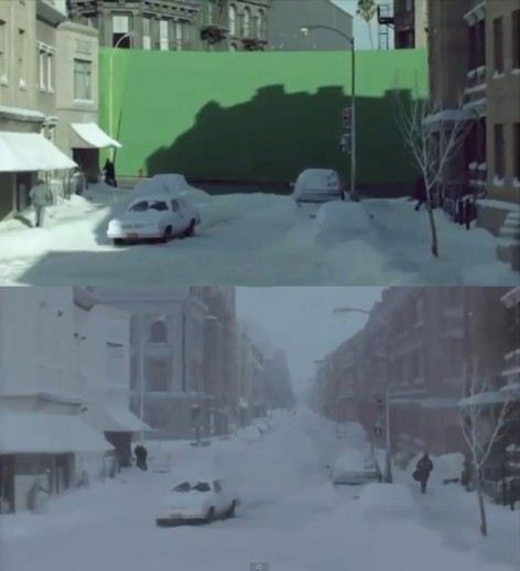 Si tratta di quei pannelloni verdi che vengono piazzati sugli sfondi dei set per essere poi sostituiti in fase di postproduzione con immagini diverse e cambiare così l’ambiente in cui la scena viene girata.