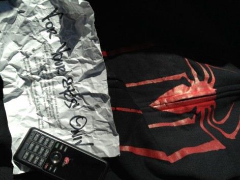 Due magliette col simbolo del ragno, un telefono cellulare funzionante ed un messaggio strettamente riservato contrassegnato “For your eyes only“.