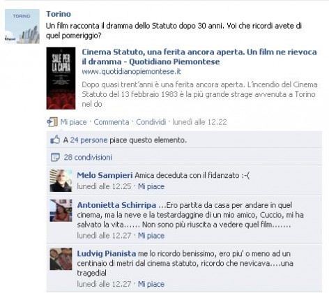Ora, siccome gestisco anche le pagine Facebook sia di Quotidiano Piemontese che di Torino, ho pensato che fossero due buoni spazi per rilanciare l’articolo e chiedere ai fan un loro ricordo di quella domenica pomeriggio.