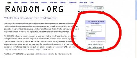 Come potete vedere dallo screenshot qui sotto l’estrazione effettuata velocemente con random.org ha sancito che la vincitrice è Valentina Merlo, che è gia stata contattata e che riceverà il libro direttamente da Bietti Edizioni.