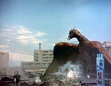 Si tratta di uno pterodattilo gigante che parte secco e punta sulle città del Giappone per distruggerle.