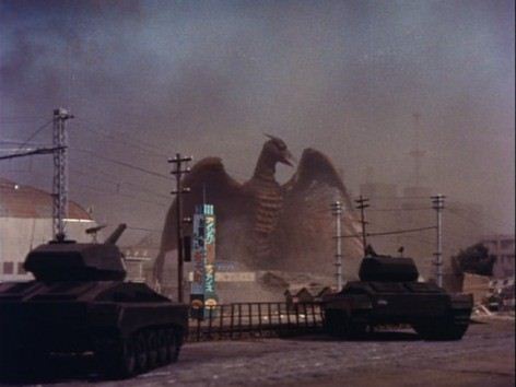 Poi naturalmente la sequenza in cui Rodan attacca e distrugge la città, una delle scene più famose dell’intera filmografia di Honda, con la città ricostruita e i modellini di carri armati che sparacchiano.