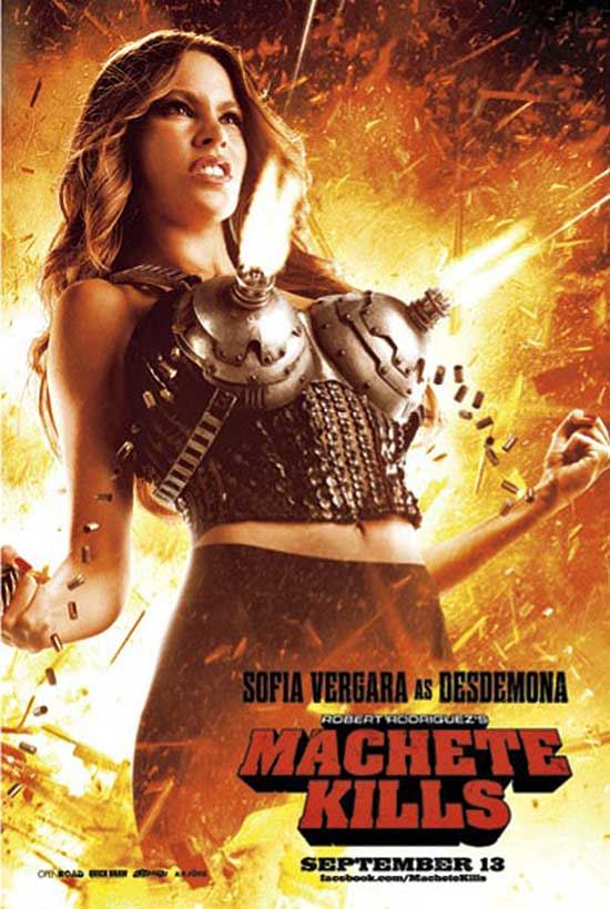 Ma mi perdonerete, lo so, anche perchè l’immagine in questione è l’incredibile locandina di Machete Kills che mostra Desdemona, il personaggio interpretato da Sofia Vergara e dotato di imperdibili tette mitragliatrici.