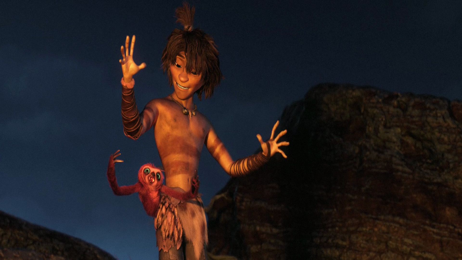 Eep però è curiosa e fugge dalla caverna finendo per incontrare Guy, un giovane ragazzo che è un po’ diverso dalla sua famiglia. Lui sa che il mondo sta finendo, ha scoperto il fuoco ed usa la testa e non il fisico per sopravvivere nell’ostilità del mondo.