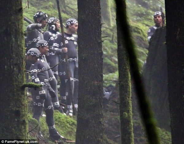 La foto della settimana è questo scatto rubato sul set di Dawn of the Planet of the Apes, il seguito de L’alba del pianeta delle scimmie, splendido perchè ci mostra gli attori attrezzati con le tute della motion capture ma inseriti in ambiente naturale.